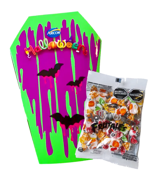 Monkey-Caramelo Masticable Ataud Halloween Tutti Sandia Blueberry Uva 100g